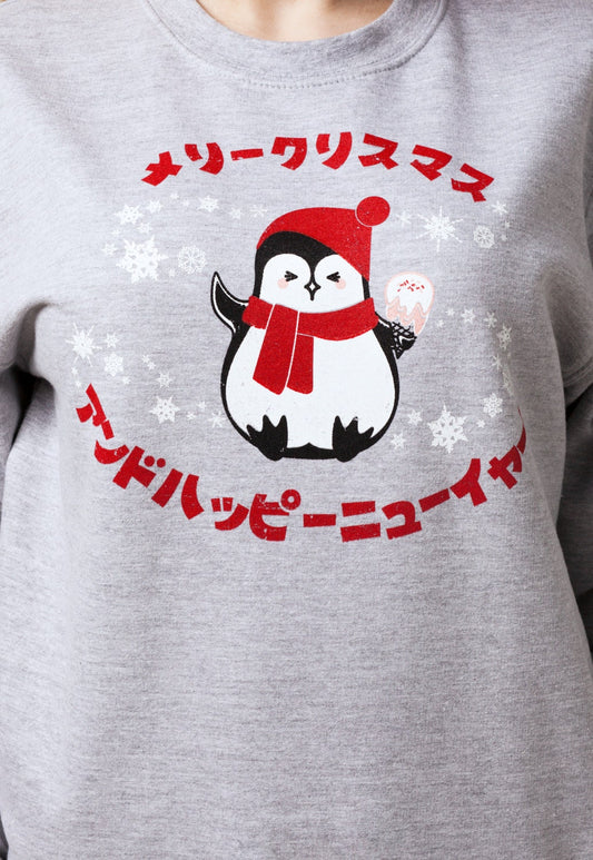 Japanese Christmas Sweatshirt Kawaii Penguin Japan Anime Manga Holiday Xmas Printed Mens Womens Aesthetic Jumper Long Sleeve Top Cute Gift