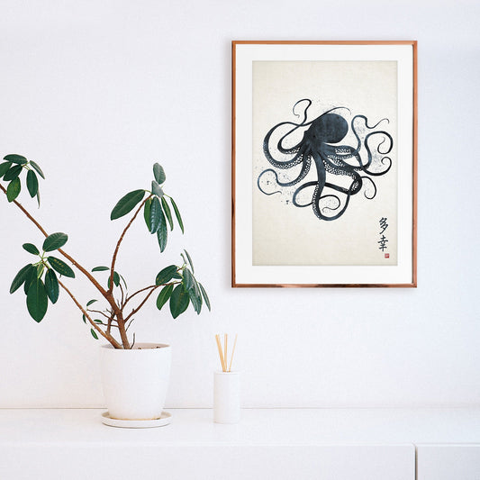 Japanese Octopus Art Print Poster Woodblock Ukiyo-e Style Wall Samurai Tattoo Monster Kanji Gyotaku Japan Calligraphy Beautiful Bushido A3