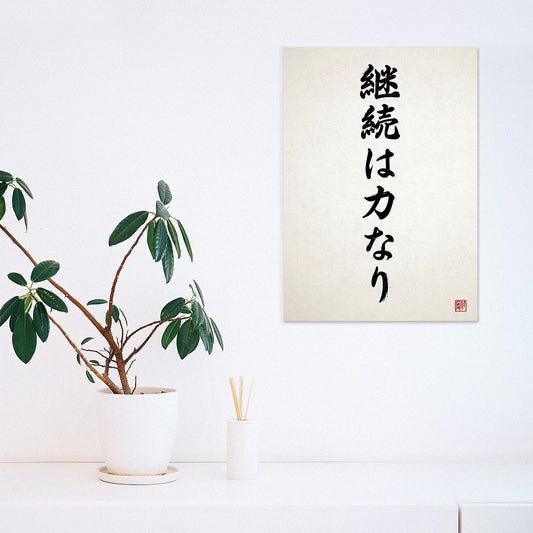 Japanese Calligraphy Keizoku Chikara Nari Wall Art Print Poster Ukiyo-e Zen Inspirational Quote Power Perseverance Tattoo Kanji Bushido A3