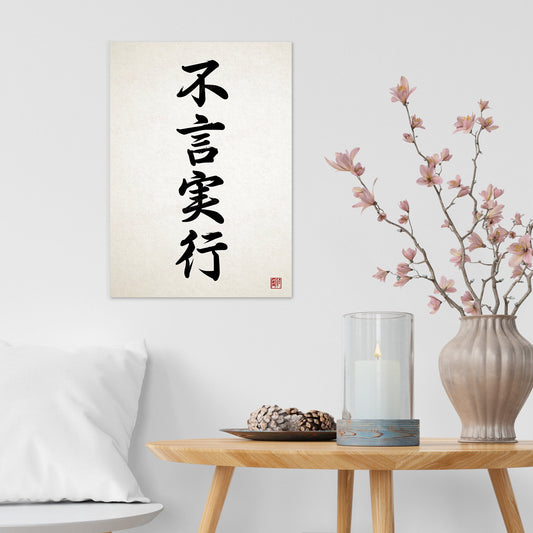 Japanese Calligraphy Fugen Jikkou Art Print Poster Wall Decor Ukiyo-e Zen Inspirational Quote Power Motivational Tattoo Kanji Dojo Bushido