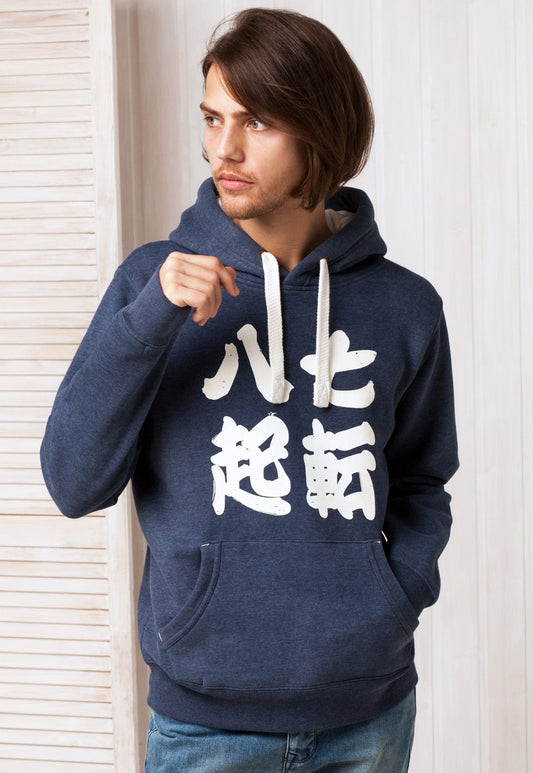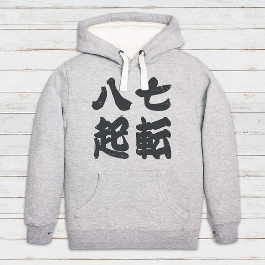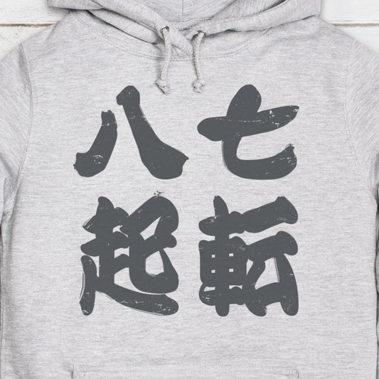 Japanese Hoodie Shichiten Hakki/ Nanakorobi Yaoki Japan Calligraphy Positive Motivational Jumper with Thumb Hole Cuffs Sweatshirt Hooded Top
