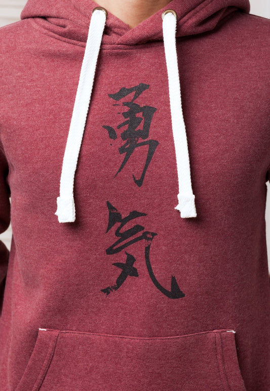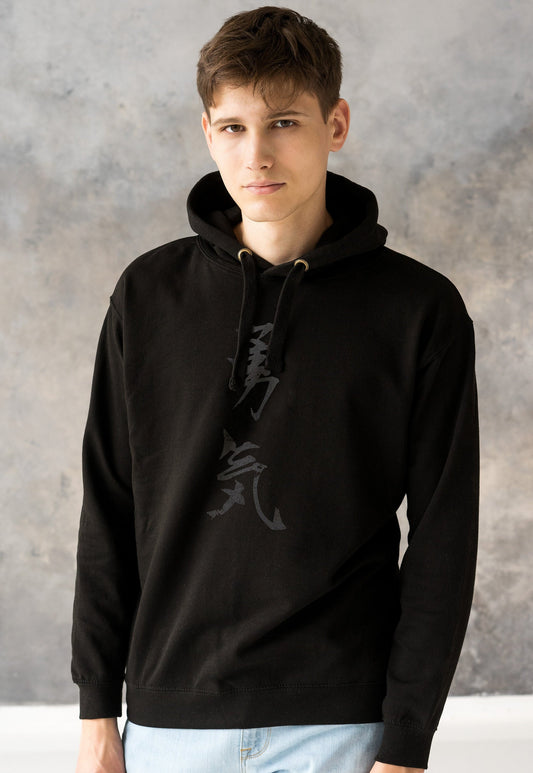 Japanese Hoodie Yuki/Courage - Japan Calligraphy Positive Motivational Jumper with Thumb Hole Cuffs Sweatshirt Hooded Top
