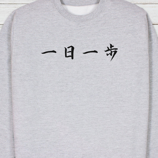 Japanese Calligraphy Art Sweatshirt Ichinichi Ippo Buddhist Yoga Zen Japan Martial Arts Anime Manga Aesthetic Printed Womens Mens Jumper Top