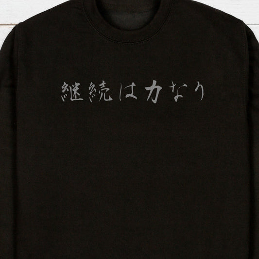 Japanese Calligraphy Art Sweatshirt Keizoku Chikara Nari Buddhist Yoga Zen Martial Arts Anime Manga Aesthetic Printed Womens Mens Jumper Top
