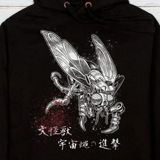 Japanese Hoodie Space Robot Fly Insect Kaiju Tattoo B-Movie Anime Manga Kanji Calligraphy Printed Mens Womens Sweatshirt Printed Hooded Top