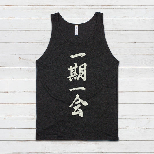 Japanese Calligraphy Tank Top - Ichigo Ichie Japan Calligraphy Buddhist Yoga Zen Martial Arts Anime Manga Gym Mens Womens Printed Vest Cami