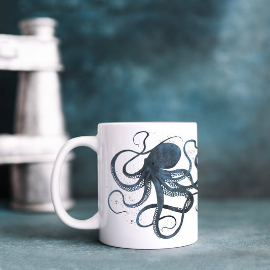 Japanese Octopus Ukiyo-e Art Mug Cup with Box Boxed Woodblock Print Samurai Tattoo Bushido Monster Kanji Gyotaku Japan Koi Calligraphy Gift