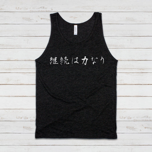 Japanese Calligraphy Tank Top Keizoku Chikara Nari Calligraphy Buddhist Yoga Zen Martial Arts Anime Manga Gym Mens Womens Printed Vest Cami