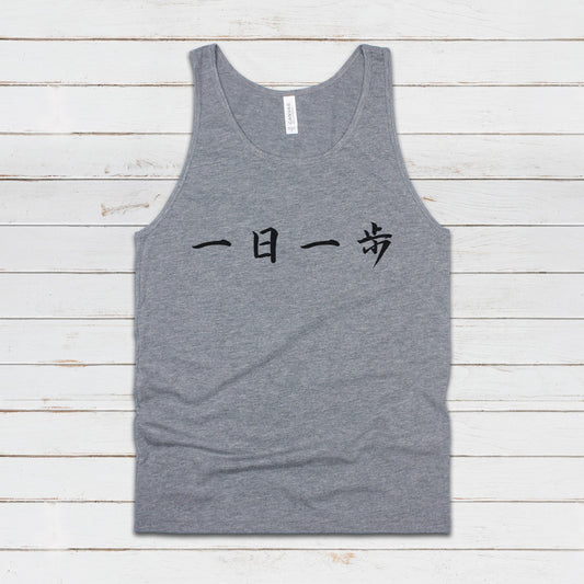 Japanese Calligraphy Tank Top Ichinichi Ippo Calligraphy Buddhist Yoga Zen Japan Martial Arts Anime Manga Gym Mens Womens Printed Vest Cami