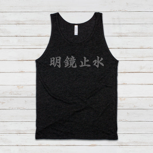 Japanese Calligraphy Tank Top Meikyo Shisui Calligraphy Buddhist Yoga Zen Japan Martial Arts Anime Manga Gym Mens Womens Printed Vest Cami