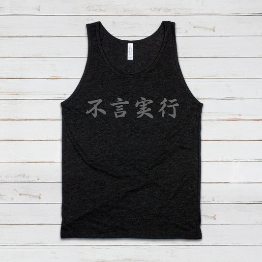 Japanese Calligraphy Tank Top Fugen Jikkou Calligraphy Buddhist Yoga Zen Japan Martial Arts Anime Manga Gym Mens Womens Printed Vest Cami