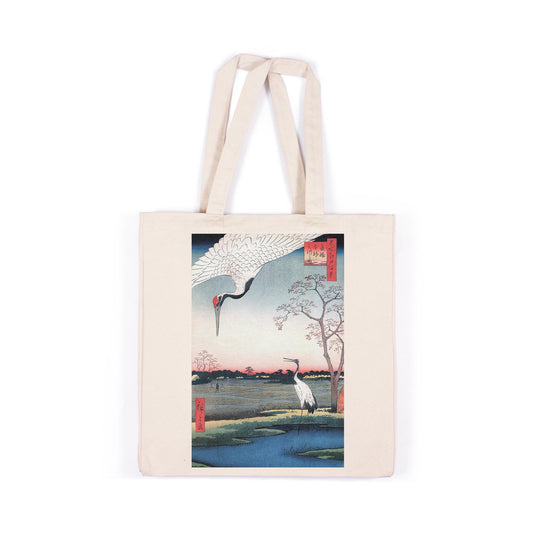Japanese Hiroshige Cranes Canvas Tote Bag Ukiyo-e Traditional Art Japan Yoga Pretty Cute Gift Cotton Shopper Printed Eco Friendly Market