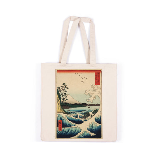 Japanese Hiroshige Wave Canvas Tote Bag Ukiyo-e Traditional Art Japan Yoga Pretty Cute Gift Cotton Shopper Printed Eco Friendly Market Satta