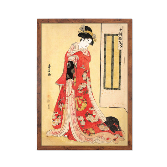 Japanese Art Print Poster Woodblock Ukiyo-e Framed Mounted Wall Kyoto Geisha Maiko Tattoo Beautiful Japan Calligraphy Spaniel Dog Bijin A2