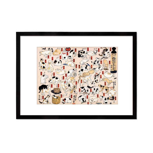 Japanese Art Cats Print Poster Woodblock Ukiyo-e Framed Mounted Wall Utagawa Kuniyoshi Tokaido Tattoo Cute Kawaii Funny Calligraphy A2 A3