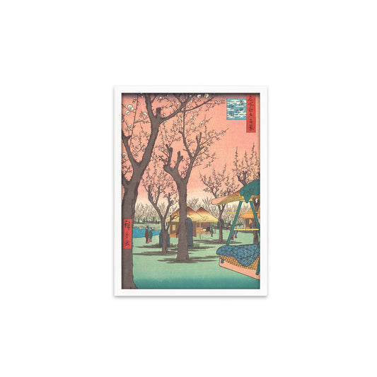 Japanese Art Print Poster Woodblock Ukiyo-e Framed Mounted Wall Hiroshige Plum Garden Kamata Flowers Edo Kyoto Beautiful Calligraphy A2 A3