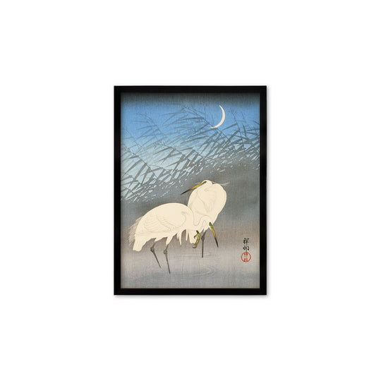 Japanese Art Egrets Cranes Framed Mounted Ukiyo-e Wall Decor Print Poster Woodblock Koson Shoson Heron Bird Calligraphy Beautiful Haiku Cute