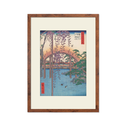 Japanese Art Print Poster Woodblock Ukiyo-e Framed Mounted Wall Hiroshige Kameido Tenjin Keidai Monet Bridge Wisteria Flowers Pretty A2 A3