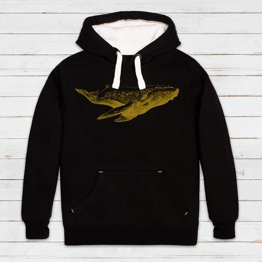 Humpback Whale Hoodie Gyotaku Traditional Art Pencil Drawing Design Blue Orca Earth Planet Ocean Womens Mens Sweatshirt Printed Hooded Top