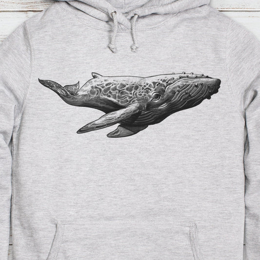 Humpback Whale Hoodie Gyotaku Art Pencil Drawing Design Blue Orca Earth Planet Ocean Cute Womens Girls Printed Hooded Top Sweatshirt Gift
