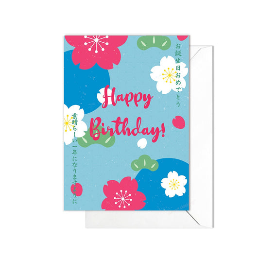 Happy Birthday Greeting Card Print Kawaii Cute Japanese Aesthetic Sakura Cherry Blossoms Anime Manga Art Unique Tokyo Japan Language - S15