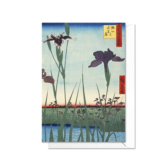 Irises Japanese Ukiyo-e Art Greeting Card Woodblock Print Aesthetic Utagawa Hiroshige Flowers Nature Pretty Beautiful Elegant Luxury - H15