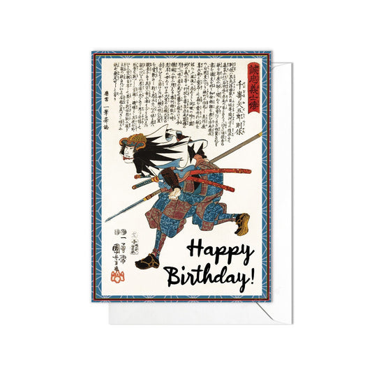 Happy Birthday Japanese Ukiyo-e Art Greeting Card Woodblock Print Aesthetic Utagawa Kuniyoshi Samurai Warrior Martial Arts Bushido - S94