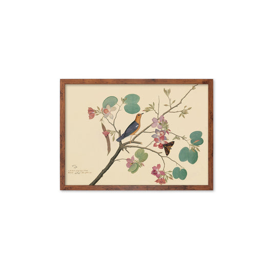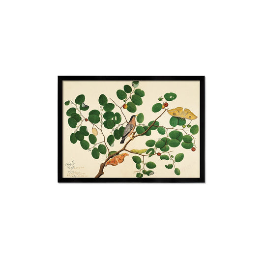 Framed Mounted Indian Jujube Tree Art Vintage Print Poster Antique Sheikh Zain al-Din Painting Nature Birds Butterflies Georgian Victorian