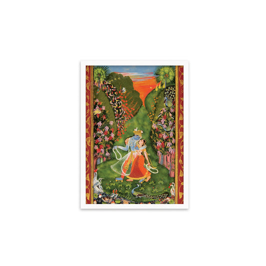 Framed Mounted Indian Art Vintage Print Poster Antique Radha and Krishna Walk in a Flowering Grove The Kota Master Hindu Painting Beautiful