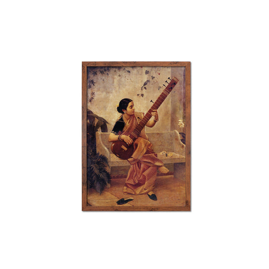 Framed Mounted Indian Art Vintage Print Poster Antique Raja Ravi Varma Kadambari Music Hath Charm Hindu Kerala Painting Pretty Veena Sitar