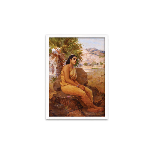 Framed Mounted Indian Art Vintage Print Poster Antique Raja Ravi Varma Shakuntala Lost in Dushyanta's Thoughts Hindu Kerala Painting Saree