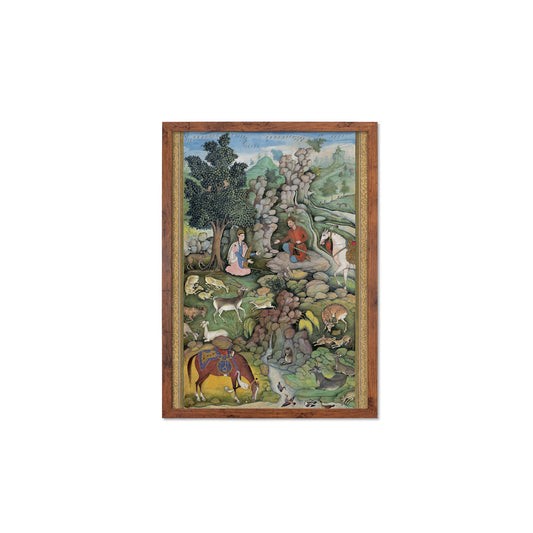 Framed Mounted Mughal Persian Art Vintage Print Poster Antique Bahram Gur Sees Herd of Deer Mesmerized by Dilarams Music Painting Iran A3