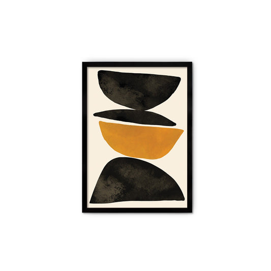 Framed Abstract Art Print Poster Wall Home Decor Modern Contemporary Brown Gold Black Calm Shapes Unique Beautiful Minimal Cairn Mid-century