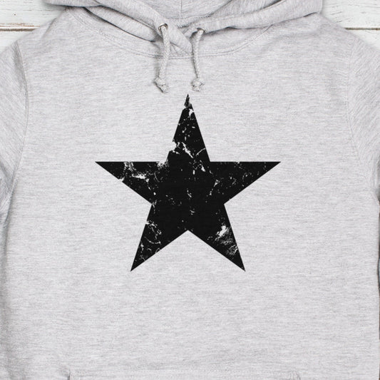 Black Star Hoodie Distressed Retro Minimalist 90s 70s Y2K Print Design Streetwear Womens Girls Graphic Printed Hooded Top Jumper Sweatshirt