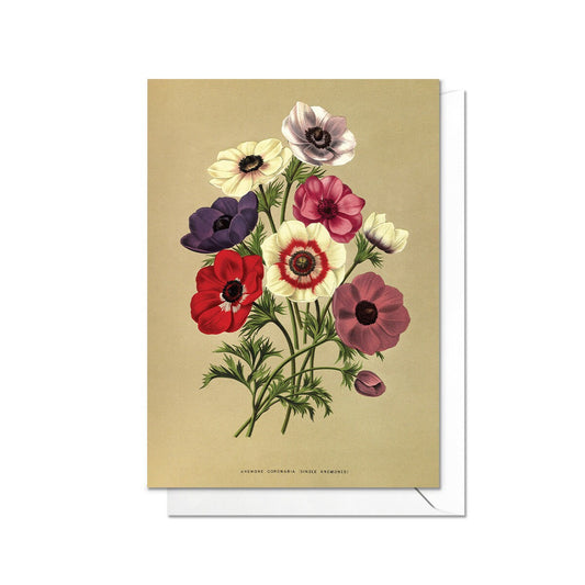 Anemone Poppy Antique Botanical Greeting Card Birthday Floral Art with Envelope Valentines Coronaria Flowers Vintage Victorian Beautiful A19