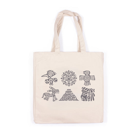 Aztec Symbols Canvas Tote Bag Traditional Art Yoga Pretty Cute Cool Mayan Cotton Reusable Shopper Printed Eco Friendly Market Christmas Gift