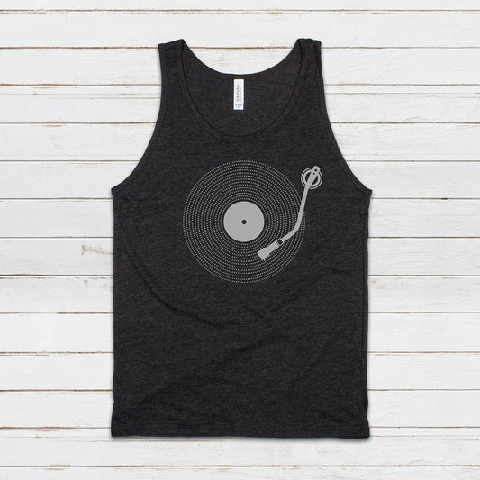 Turntable Tank Top LP Vinyl Record Player DJ Deck Decks Drum and Bass Junglist & Synth Music DnB Festival Mens Womens Printed Cami Vest Tee