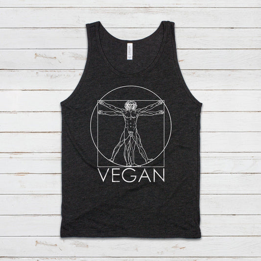 Vegan Tank Top Subtle Understated Da Vinci Vitruvian Man Sketch Drawing Art Geometric AF ALF Animal Rights Mens Womens Printed Vest Cami Tee