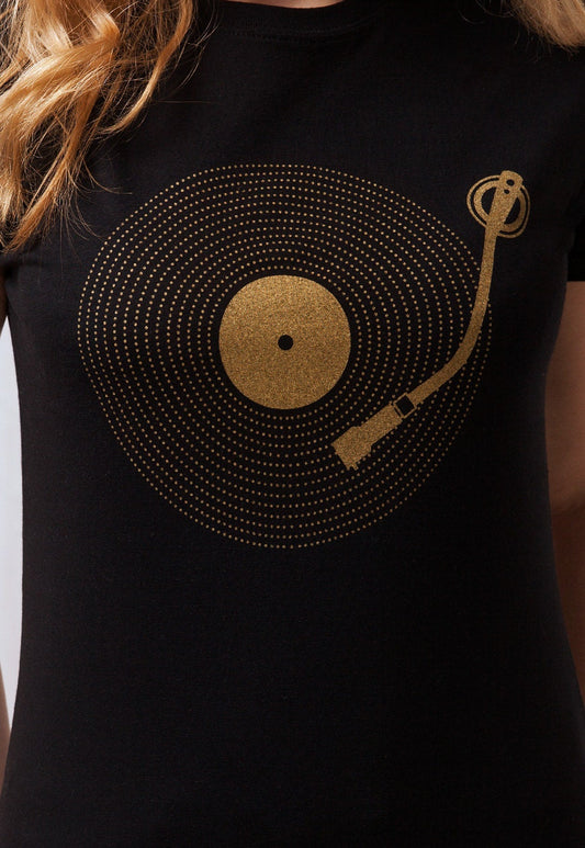 Turntable T Shirt Minimalist EDM DnB DJ Deck Decks LP Vinyl Record Player Old School Retro 70s 90s Gifts For Her Printed Womens Girls Tee