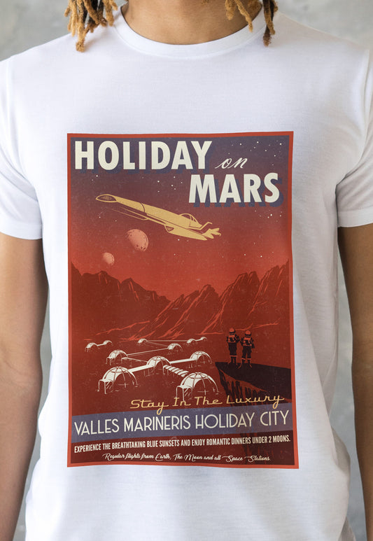 Visit Mars T Shirt Retro Travel Poster Hard Science Sci Fi Geek Geeky Astronomy Mars Moon Mission Cosmos Space Men's Unisex Printed Tee Top