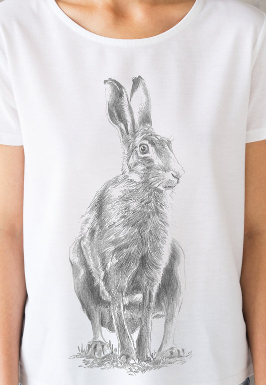 Wild Hare T Shirt Artist Pencil Sketch Drawing Animal Print Rabbit Forest Nature Cute Pretty Vegan Forest Womens Girls Graphic Printed Tee