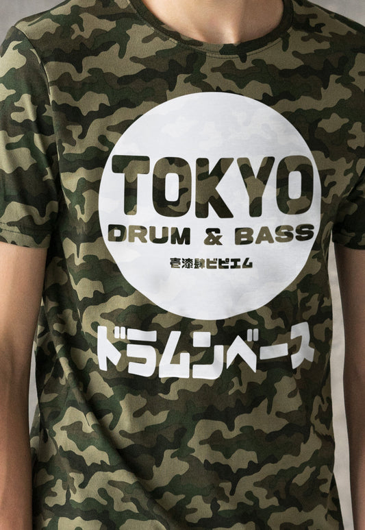 Tokyo Drum & Bass Camo T Shirt Japanese Writing 174 BPM Japan Junglist Synthesizer Synth Graphic Camouflage Mens Womens Graphic Printed Tee