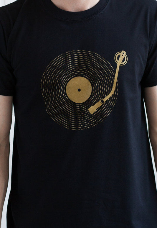 Turntable Minimalist T Shirt - LP Vinyl Record Player DJ Deck Decks Drum and Bass Junglist Breakbeat Mens Womens Screen Printed Graphic Tee