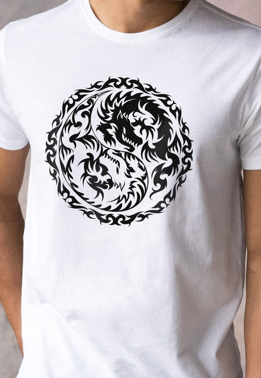 Yin Yang Dragons T Shirt - Dragon Taoism Traditional Japanese Chinese Yoga Zen Martial Arts Tai Chi Taijitu Mens Womens Screen Printed Tee