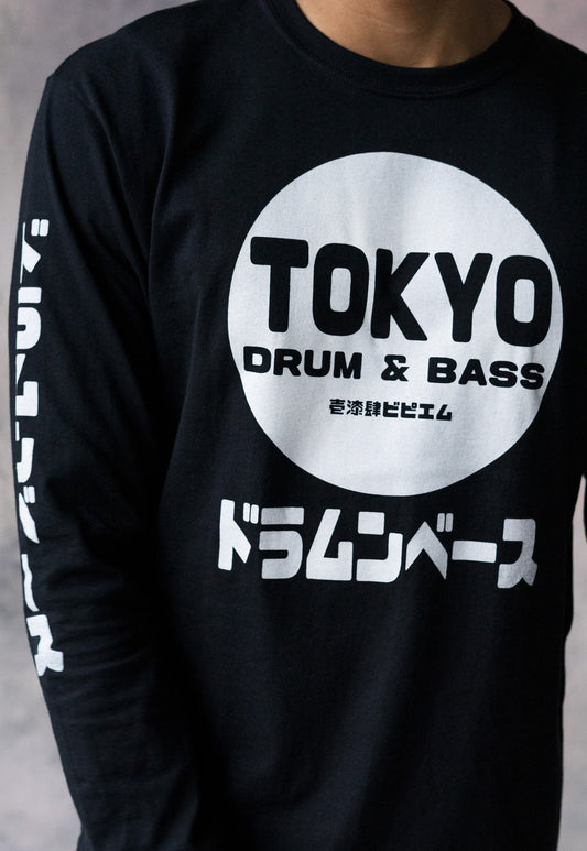 Tokyo Drum & Bass Long Sleeve T Shirt Japanese Writing Sleeve Print 174 BPM Junglist Synthesizer Synth Graphic Printed Mens Womens Japan Tee