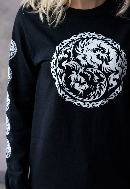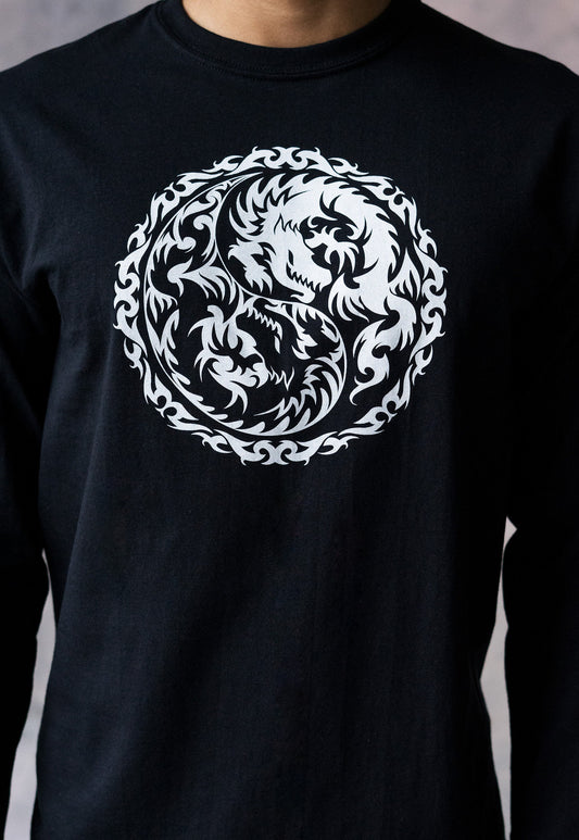 Yin Yang Dragons Long Sleeve T Shirt Taoism Chinese Japanese Dragon Tattoo Taijitu Martial Arts Boxing Gym Yoga Tai Chi Printed Mens Tee Top