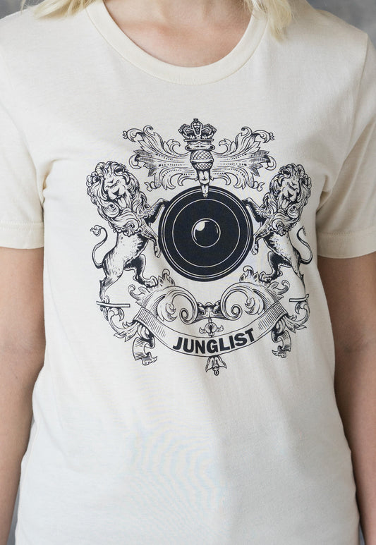 Junglist Coat Of Arms T Shirt - Jungle Massive Crest Lion Heraldry Drum and Bass DJ & Bass Synth Music Womens Festival Printed Tee Top
