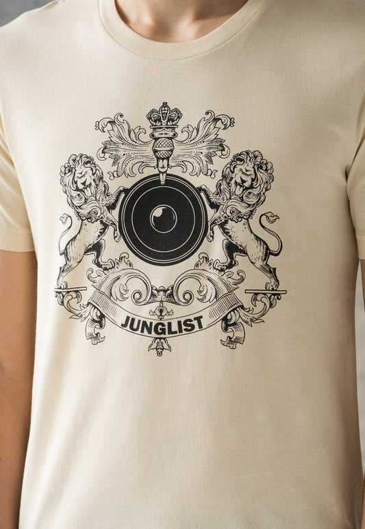 Junglist Coat Of Arms T Shirt - Jungle Massive Crest Lion Heraldry Drum and Bass DJ & Bass Synth Music Producer Festival Graphic Printed Tee
