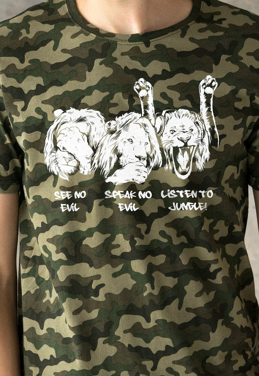 Junglist Lions T Shirt Jungle Massive Drum and Bass DJ & Synth Music Amen Slogan Funny Camo Camouflage Men's Women's Graphic Printed Tee