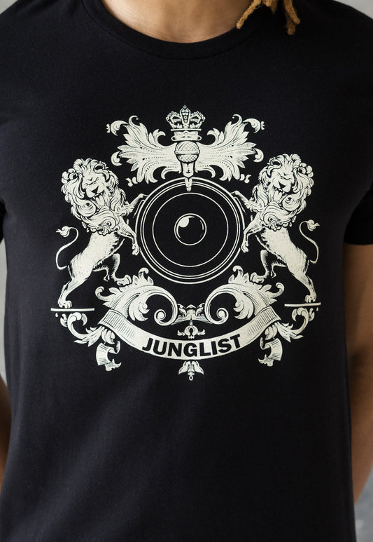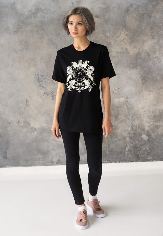 Junglist Coat Of Arms T Shirt - Jungle Massive Crest Lion Heraldry Drum and Bass DJ & Bass Synth Festival Dubstep Womens Mens Printed Tee